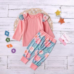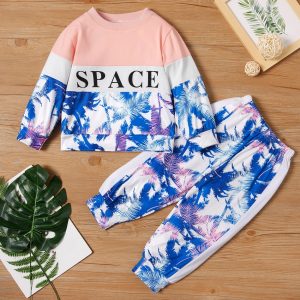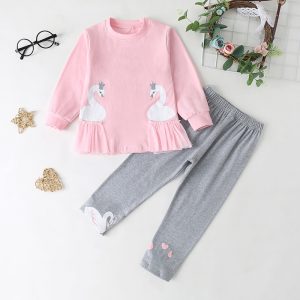 Set cu imprimeu pe bluză pentru fetițe