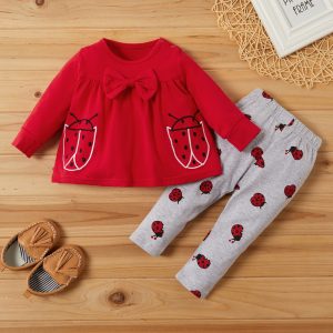 Set cu imprimeu buburuze pentru fetițe