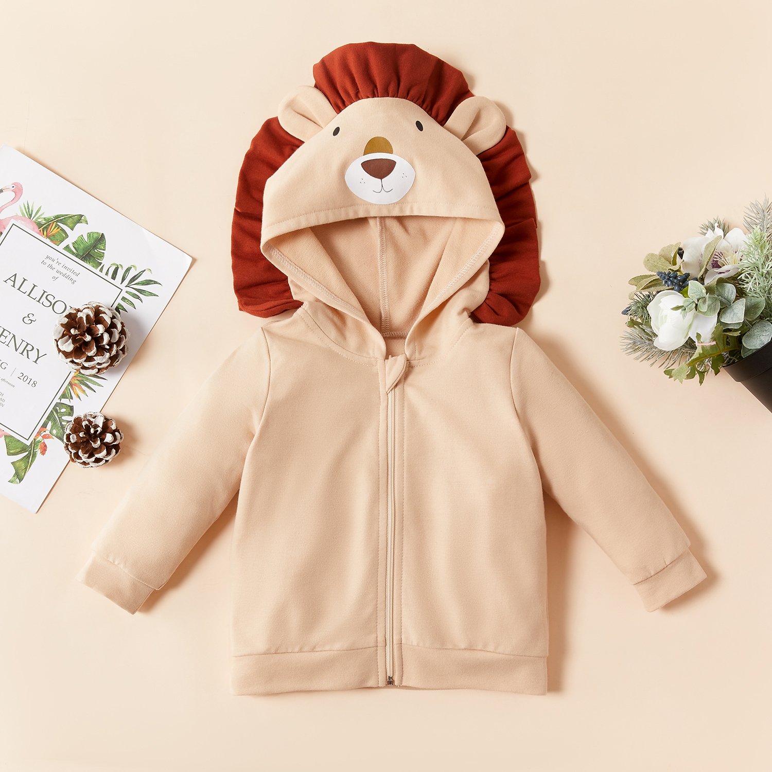 Copiilor le sta bine in haine dragalase, nu-i asa? Jacheta pentru bebelusi baby lion este un articol vestimentar potrivit pentru zile cu aer racoros, adecvata pentru bebelusi de la 0 la 24 de luni. Are inchidere cu fermoar si o intaritura in partea de sus, astfel nu deranjeaza in niciun fel gatul bebelusului. Banda elastica de la maneci si din talie se muleaza perfect pe corpul acestuia, sporind confortul in timpul purtarii. Jacheta bebelusi baby lion are gluga cu model leu, haioasa si vesela, care ii confera un aer jucaus si inventiv. Culoarea pastelata inspira calm si armonie.