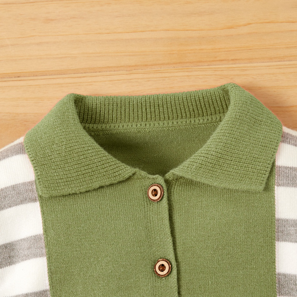 Cauti un pulover pentru bebe care sa fie comod, din material prietenos cu pielea si respirabil? Atunci acest produs este ideal pentru bebelusul tau. Bumbacul este un material 100% natural, non-alergen, care absoarbe si elimina umezeala cu usurinta. Fibra de bambus face obiectele vestimentare netede si remarcabil de respirabile. Puloverul verde cu imprimeu in dungi are nasturei care se desfac usor si un guler dragut care se potriveste si celor mai deosebite ocazii.