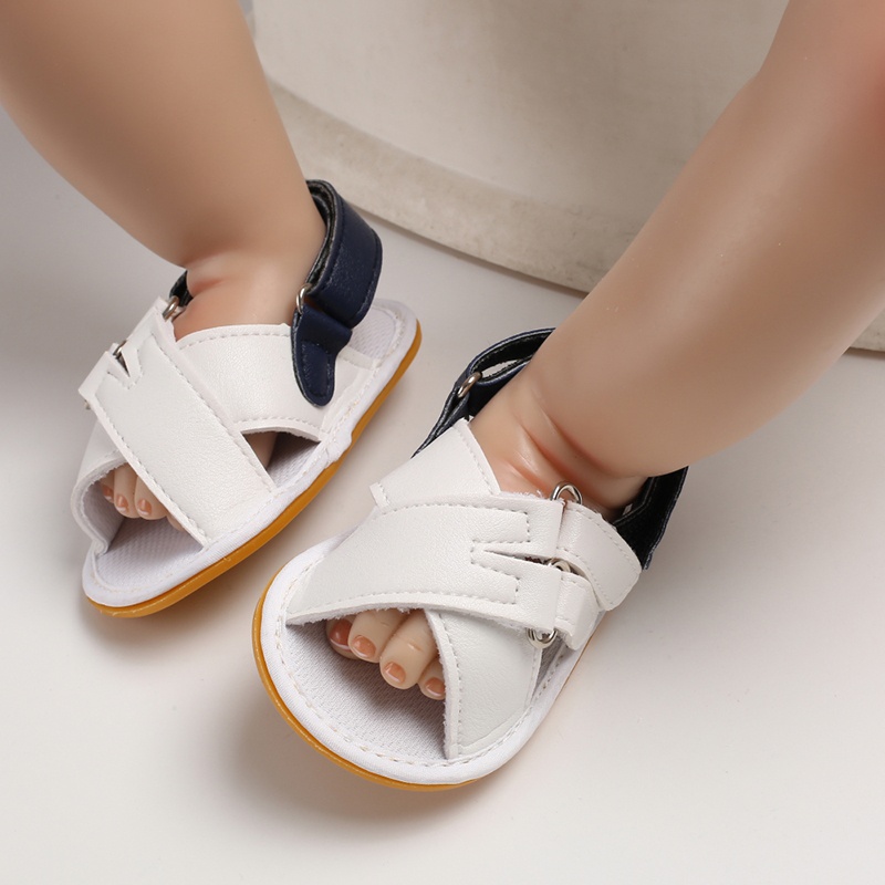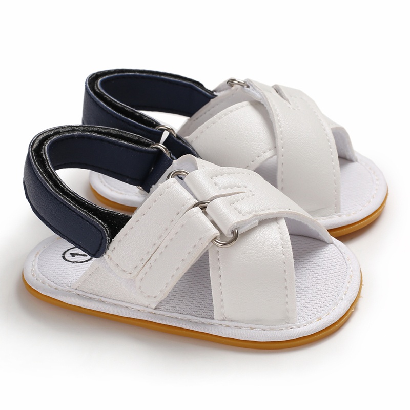 Incaltamintea pentru bebelusi protejeaza picioarele de suprafete mai aspre sau dure. Cand micii copilasi incep sa umble, talpile lor au nevoie de extra protectie pentru a evita posibilele rani. Aceste sandale antiderapante au un design minimalist, in doua culori – alb si negru. Inchiderea cu scai usureaza procesul de incaltare si descaltare iar bareta reglabila ofera confort si celor mai mici picioruse. Ajuta-ti copilasul sa faca primii pasi in siguranta, cu sandale antiderapante confortabile, din piele ecologica.