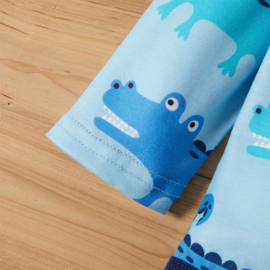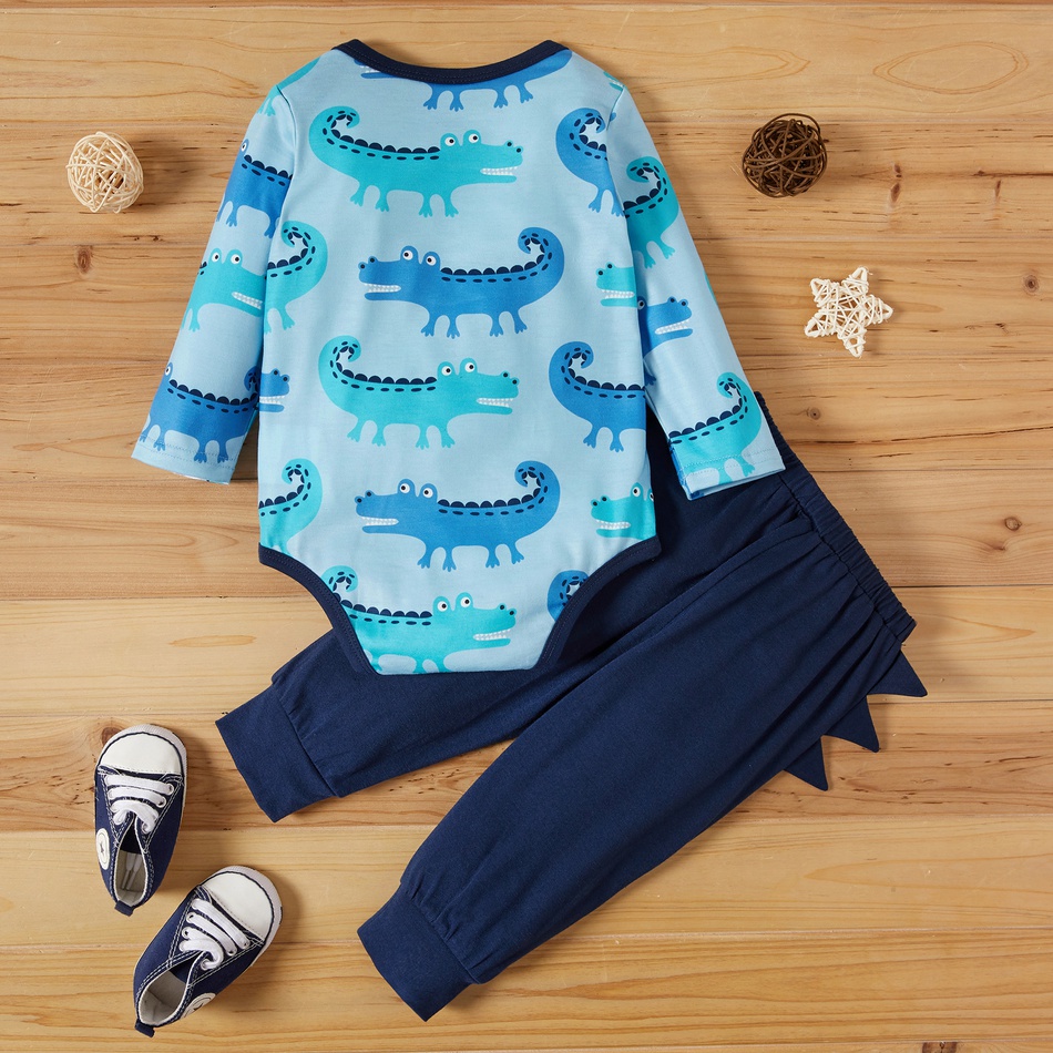 Acest set cu imprimeu crocodil pentru baieti este potrivit pentru bebelusi simpatici cu varsta intre 0 si 18 luni. Este compus dintr-un body cu maneci lungi si o pereche de pantaloni. Body-ul are culoarea albastru deschis cu accente bleumarin si imprimeu cu crocodili. Are umeri elastici si se inchide cu capse, pentru a facilita o imbracare usoara. Pantalonii sunt bleumarin si au pe laterale detalii care seamana cu niste solzi. Vrei sa ai un bebelus adorabil imbracat haios? Alege acest set cu imprimeu crocodil pentru baieti si sa inceapa distractia!