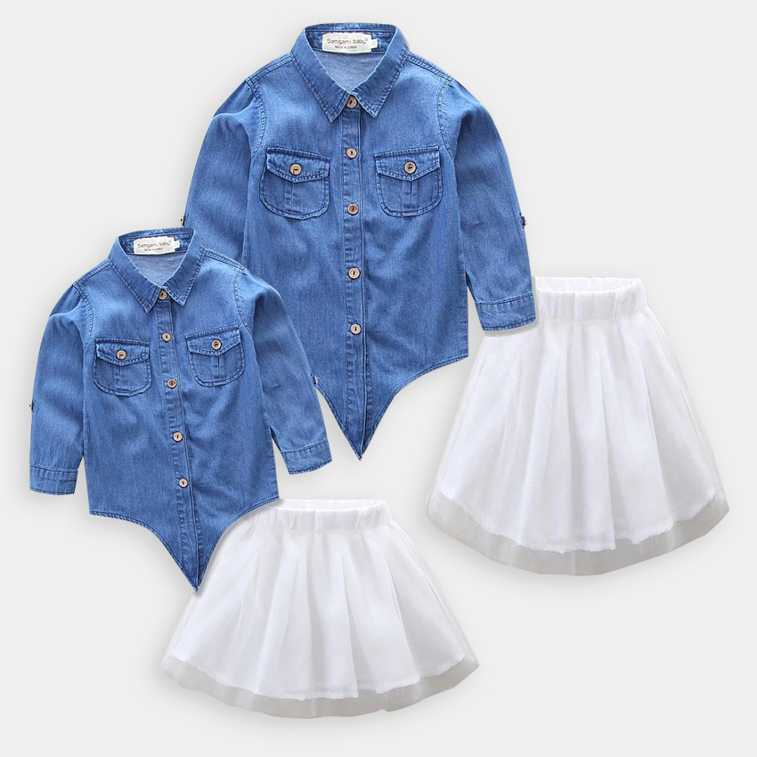 - Setul conține o cămașă ce se leagă la mijloc și o fustă din tull pentru femei