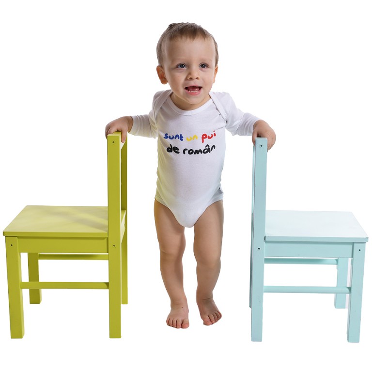 Body-urile haioase pentru bebelusi ne fac pe toti sa zambim. Modelul acesta de body bebe ce are imprimat mesajul „Sunt un pui de roman” este perfect pentru toti baieteii si fetitele. Acest body cu imprimeu are maneca lunga si acopera pielea sensibila a bebelusilor, in timp ce le ofera confort si lejeritate atunci cand il poarta. Body-ul este alb, iar contrastul dintre literele colorate in rosu, galben si albastru il fac o piesa unica. De asemenea, posibilitatea de a-l inchide cu capse si croiala petrecuta iti ofera tie posibilitatea de a-l imbraca pe bebe cu usurinta, fara efort.