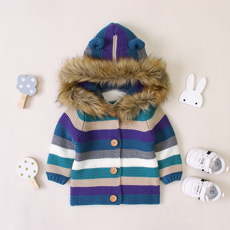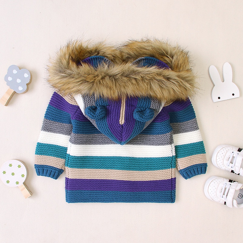 Esti in cautarea unui pulover frumos colorat care sa tina de cald bebelusului tau? Puloverul cu blanita pe gluga este o alegere minunata, fiind modern, elegant si comod totodata. Se potriveste bebelusilor cu varsta de la 0 la 12 luni. In zilele mohorate si reci, acest pulover multicolor tricotat insenineaza atmosfera, aducand zambete pe fata parintilor la vederea unui copilas imbracat atat de deosebit.